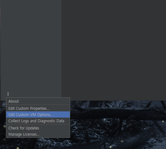 | 인텔리j의 Edit Custom VM Options...에 들어간 뒤 아래 코드를 하단에 입력해주면 끝!